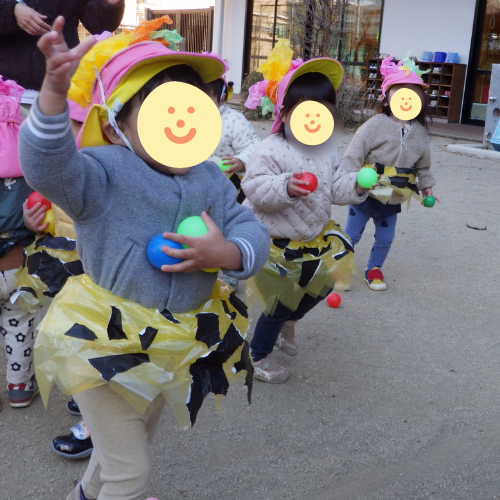 入園式、進級式、クラス懇談会、こどもの日、七夕集会、夏祭り、水遊び、お楽しみ保育、運動会、ハロウィン、親子遠足、勤労感謝の日(地域交流)、クリスマス会、生活発表会、節分集会、ひな祭り、お別れ遠足、卒園式 など
