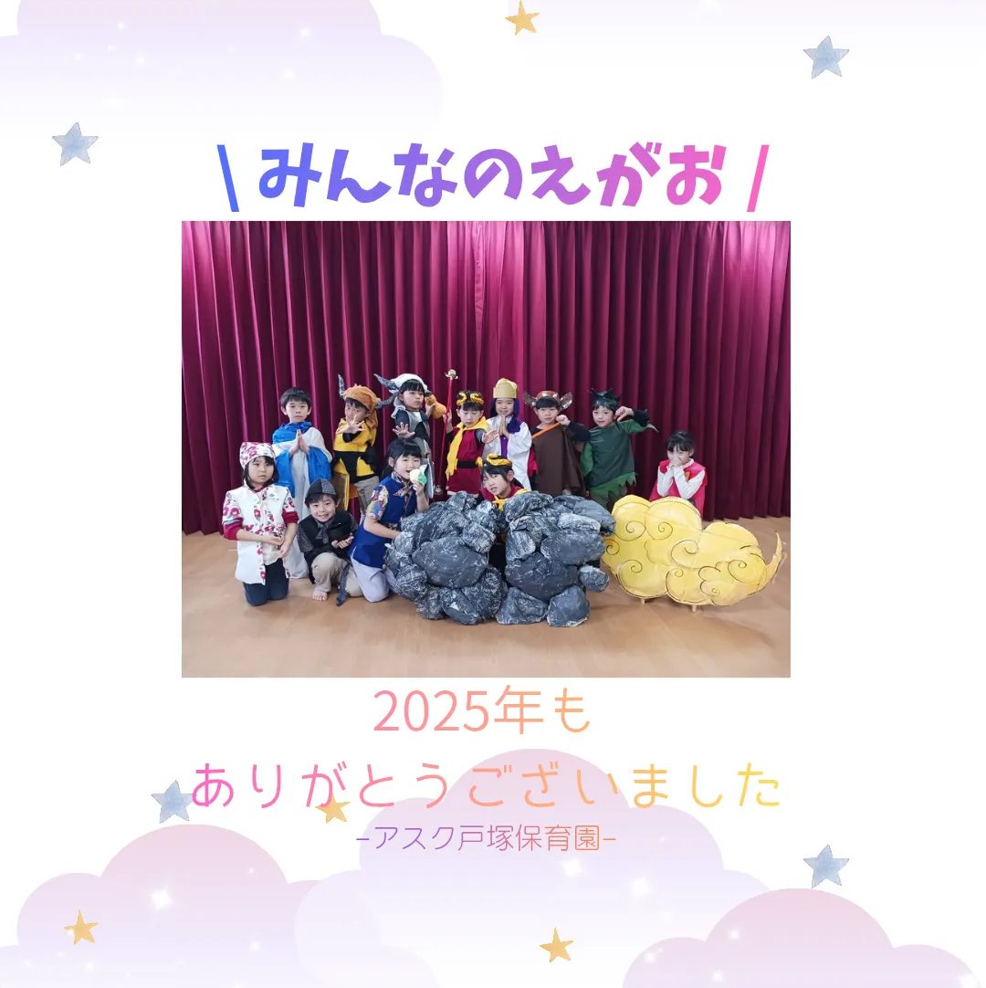 入園式、進級式、クラス懇談会、こどもの日、七夕集会、夏祭り、水遊び、お楽しみ保育、運動会、ハロウィン、親子遠足、勤労感謝の日(地域交流)、クリスマス会、生活発表会、節分集会、ひな祭り、お別れ遠足、卒園式 など
